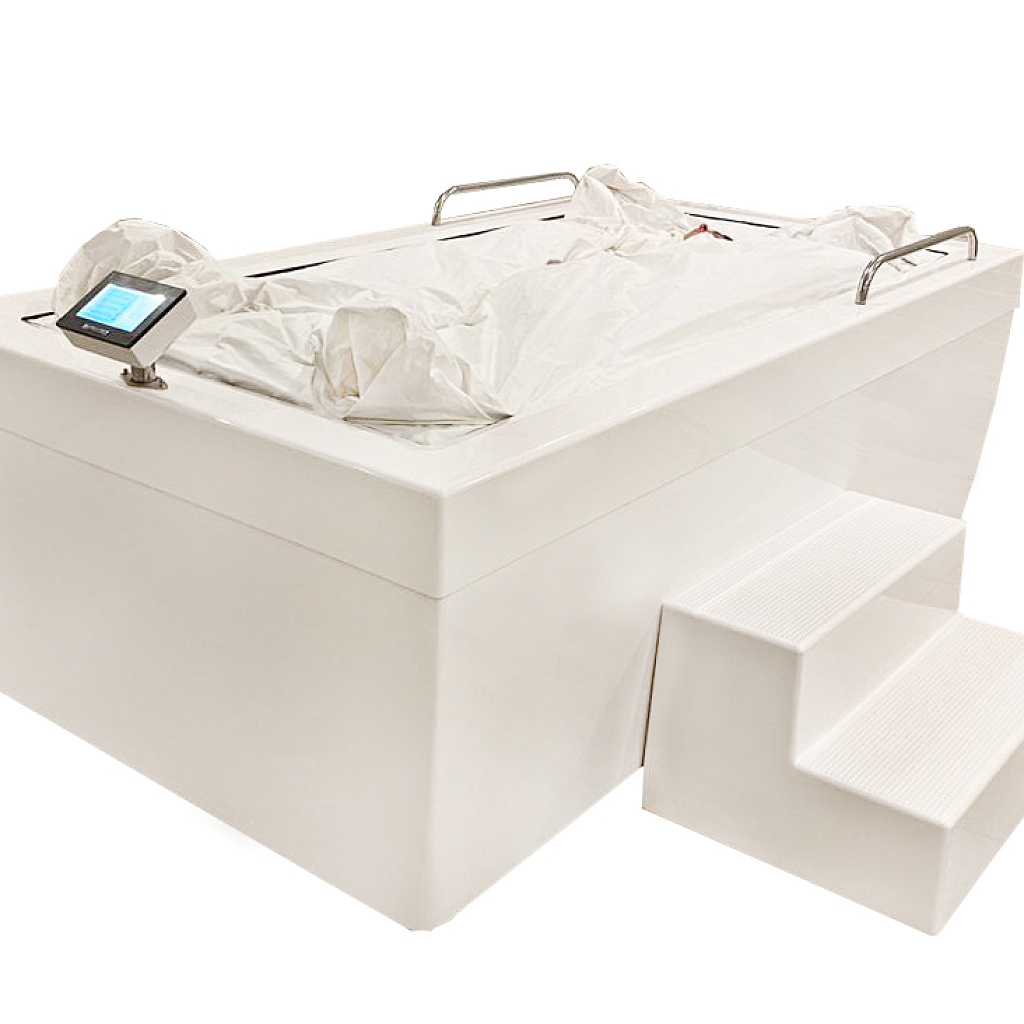 Пациент после проведения процедуры в иммерсионной ванне остаётся сухим – ванна оборудована особой тончайшей мембраной, внутри которой создаются колебания воды, воздействующие на тело пациента. Также теплая поверхность мембраны избавляет от необходимости использования одеяла.
